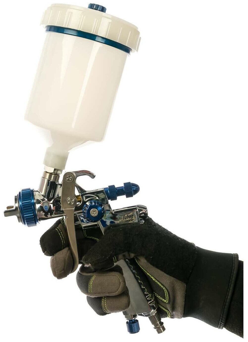 Description: Type: pneumatic spray gun, tank volume: 0.60 l, spraying method: LVMP, material flow control, maximum nozzle diameter: 1.30 mm