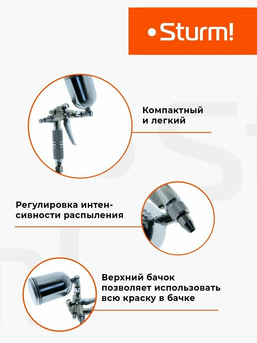 Type: pneumatic spray gun, tank volume: 0.25 l, maximum nozzle diameter: 0.50 mm