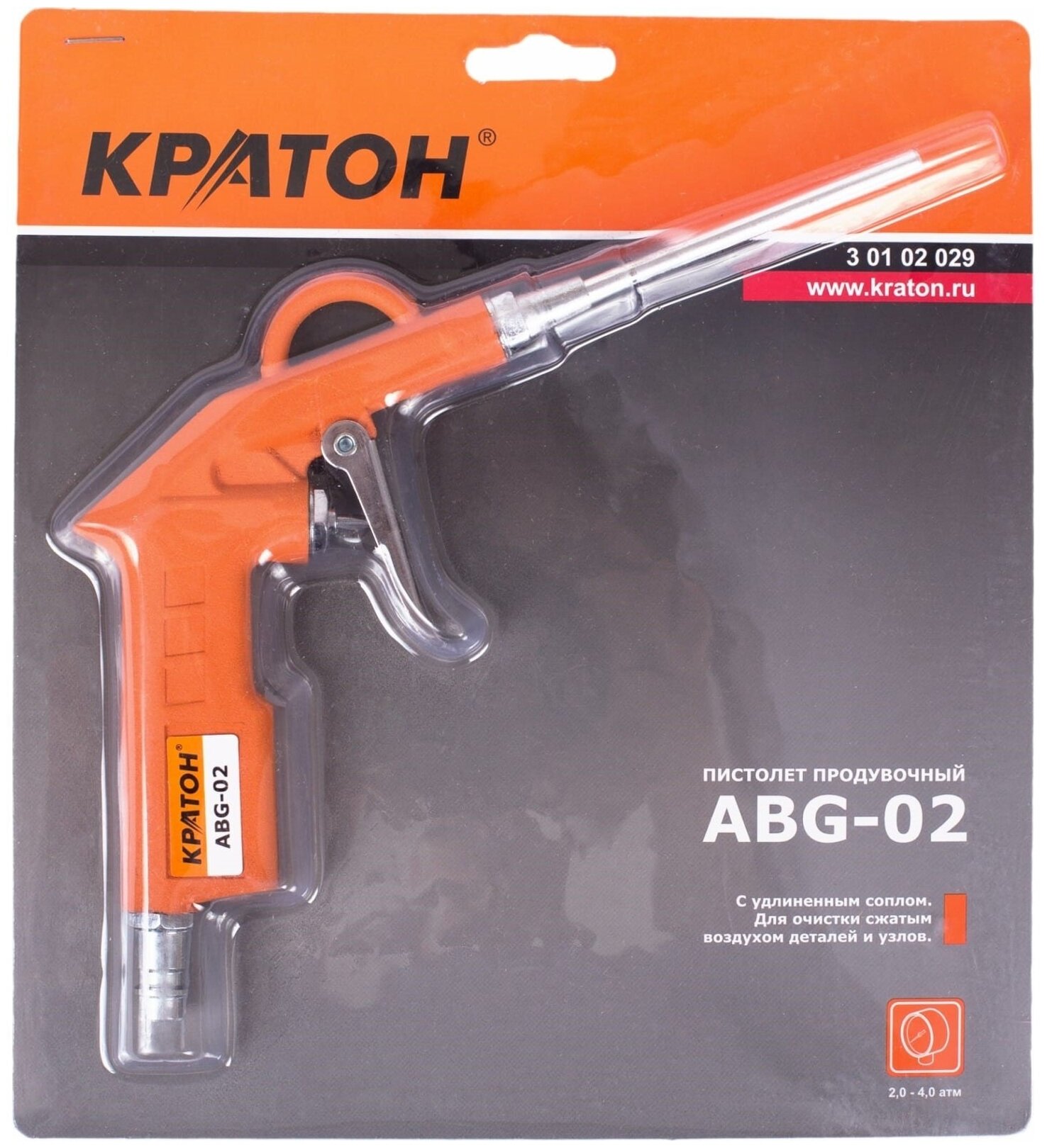 Type: air gun, purpose: blow-off, minimum pressure: 2 atm, maximum pressure: 8 atm, maximum air flow: 205 l/min, air nozzle diameter [inch]: 1/4, connection type: rapid, weight: 0.17 kg