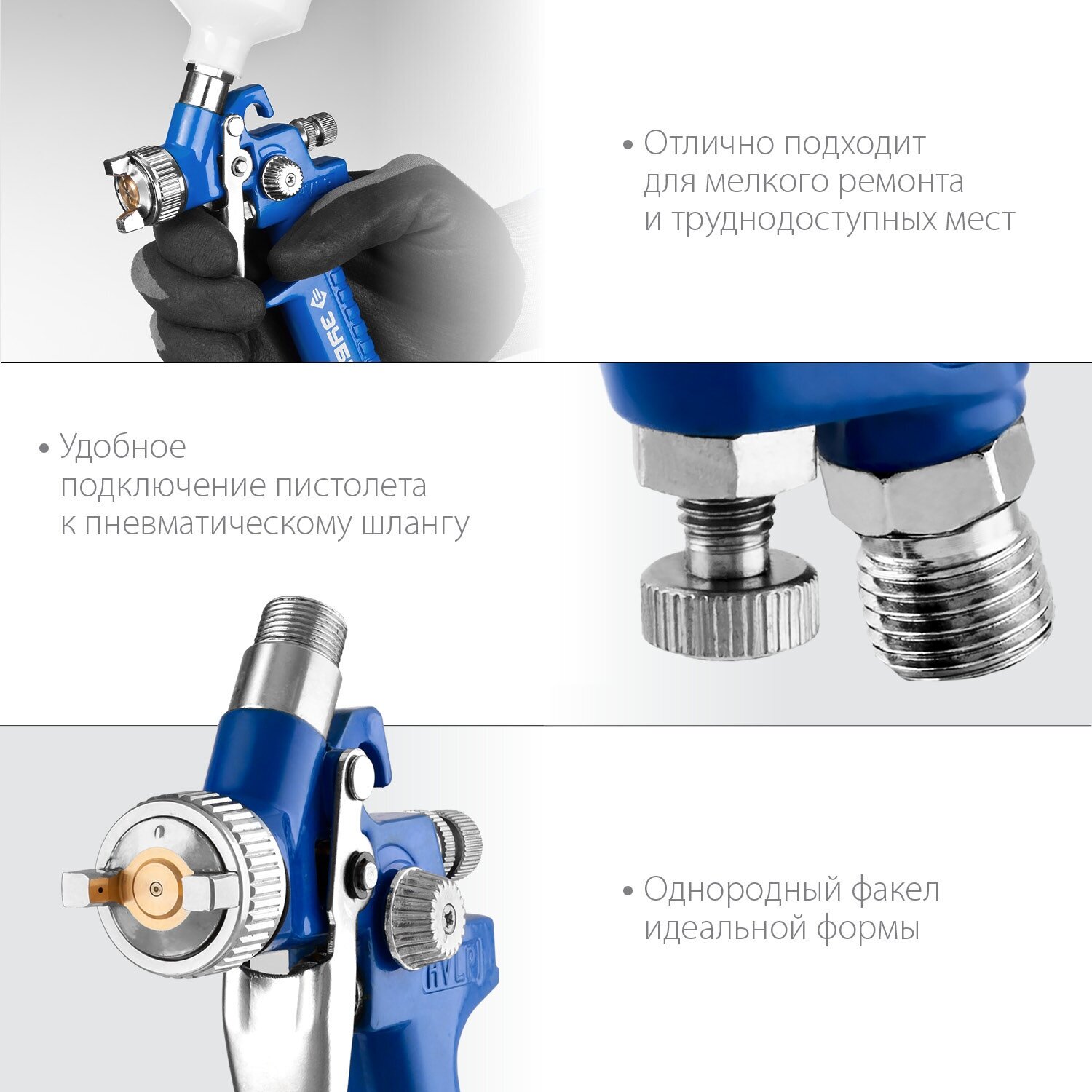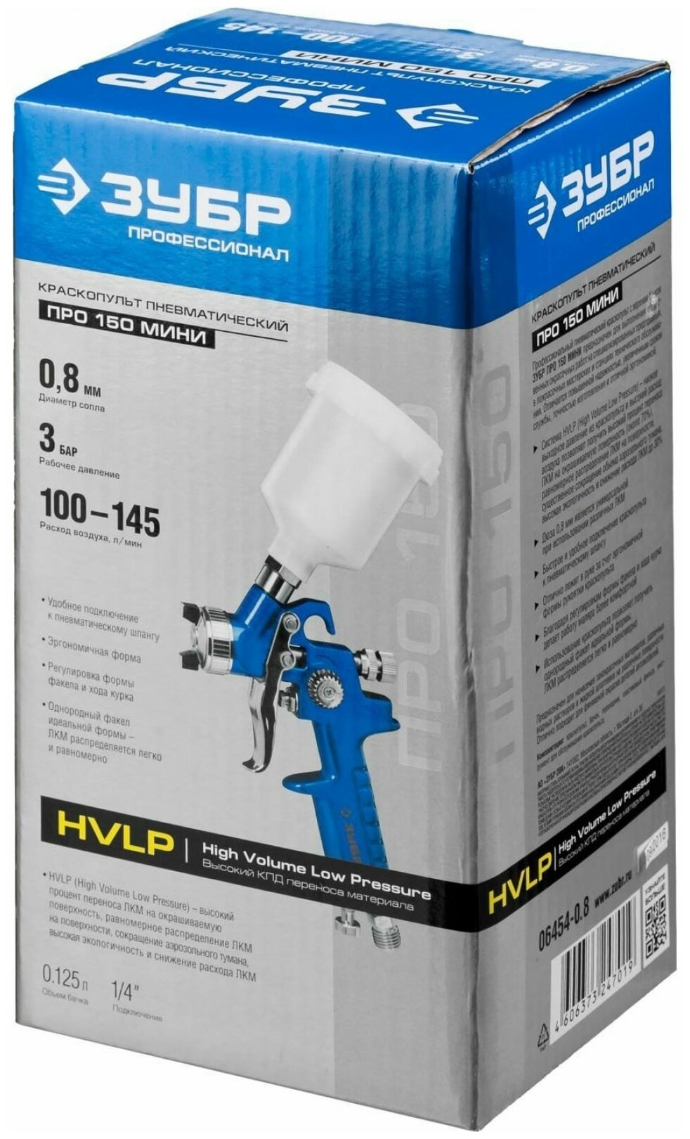 Type: pneumatic spray gun, tank volume: 0.12 l, spraying method: HVLP, material flow control, maximum nozzle diameter: 0.80 mm