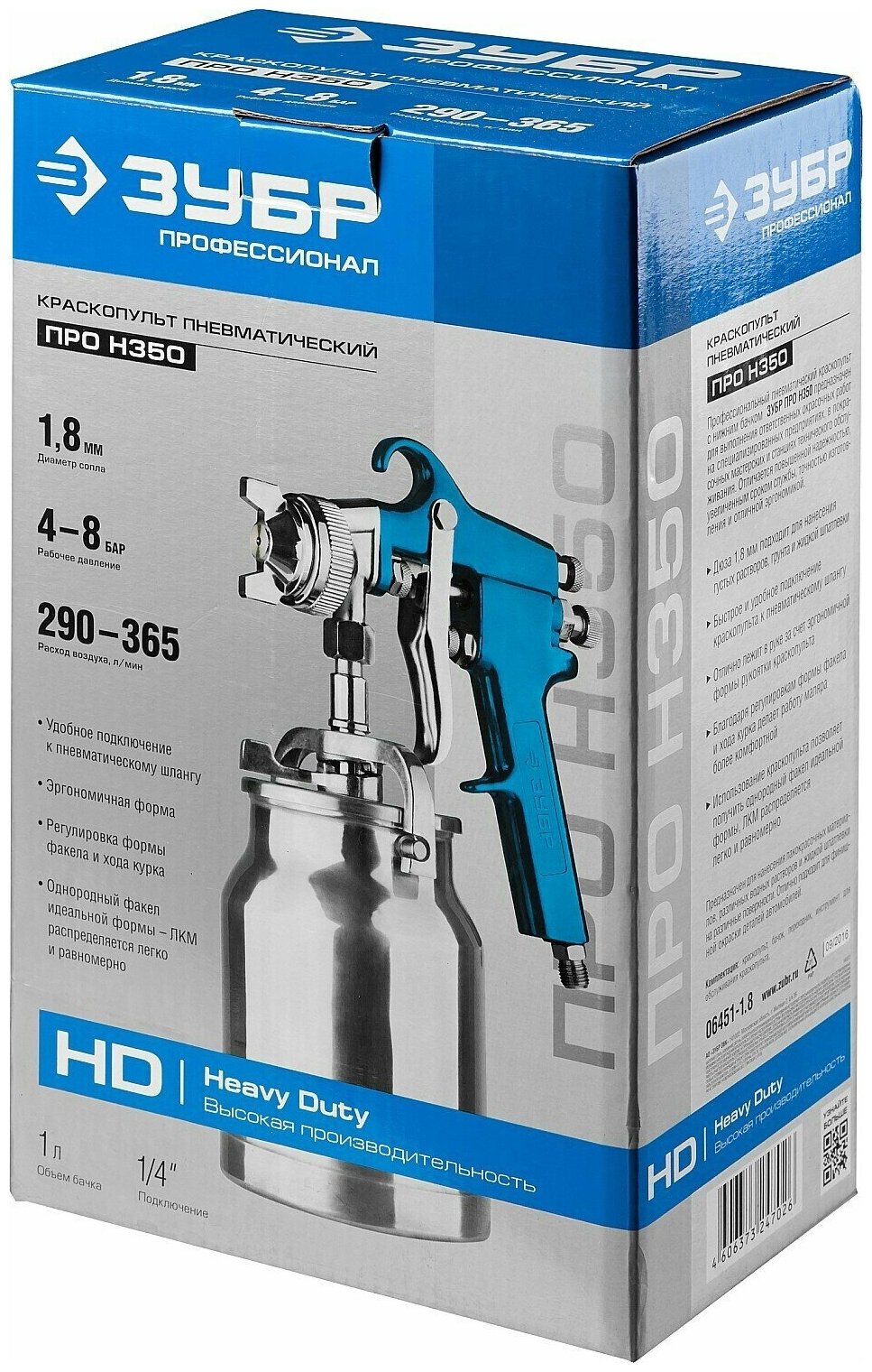 Type: pneumatic spray gun, tank volume: 1 l, spraying method: HD, material inlet type: lower, maximum nozzle diameter: 1.80 mm