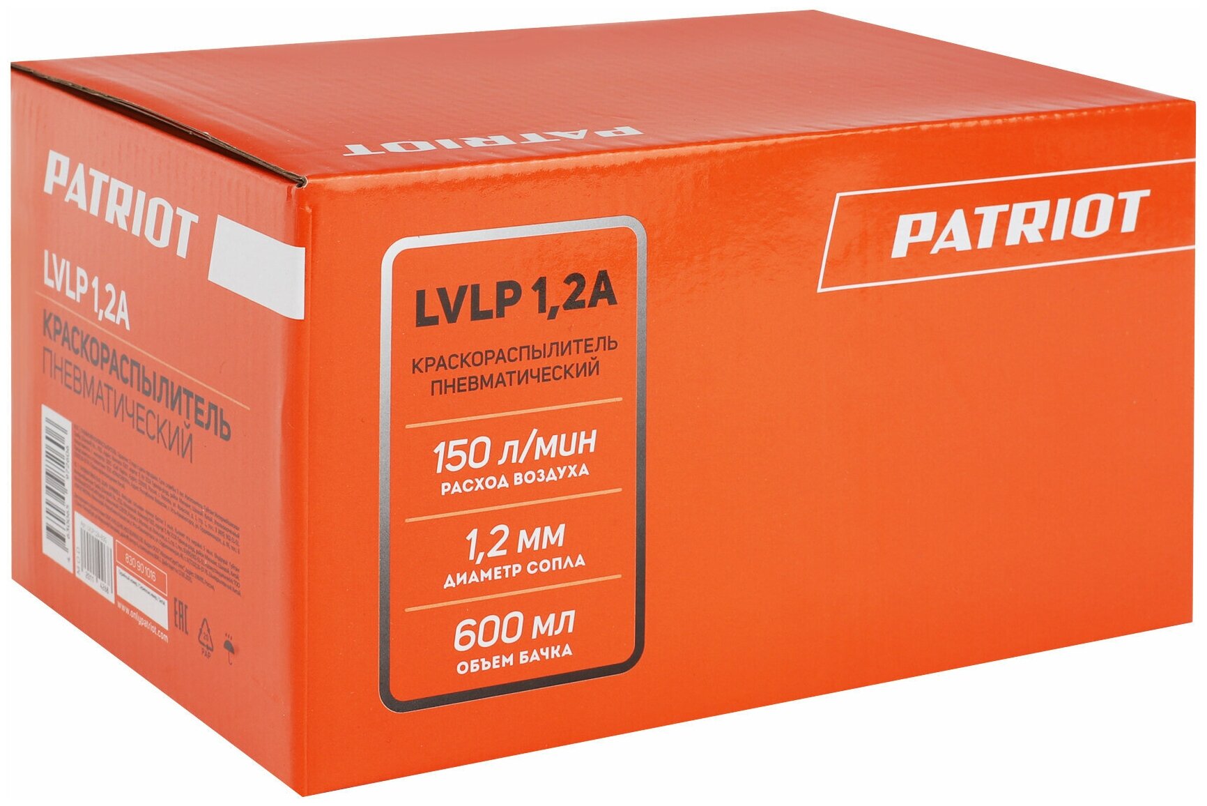Professional pneumatic paint sprayer PATRIOT LVLP 1,2A, w/w, 0.6 l, nozzle 1.2 mm, , 150 l/min, quick release 1/4..
