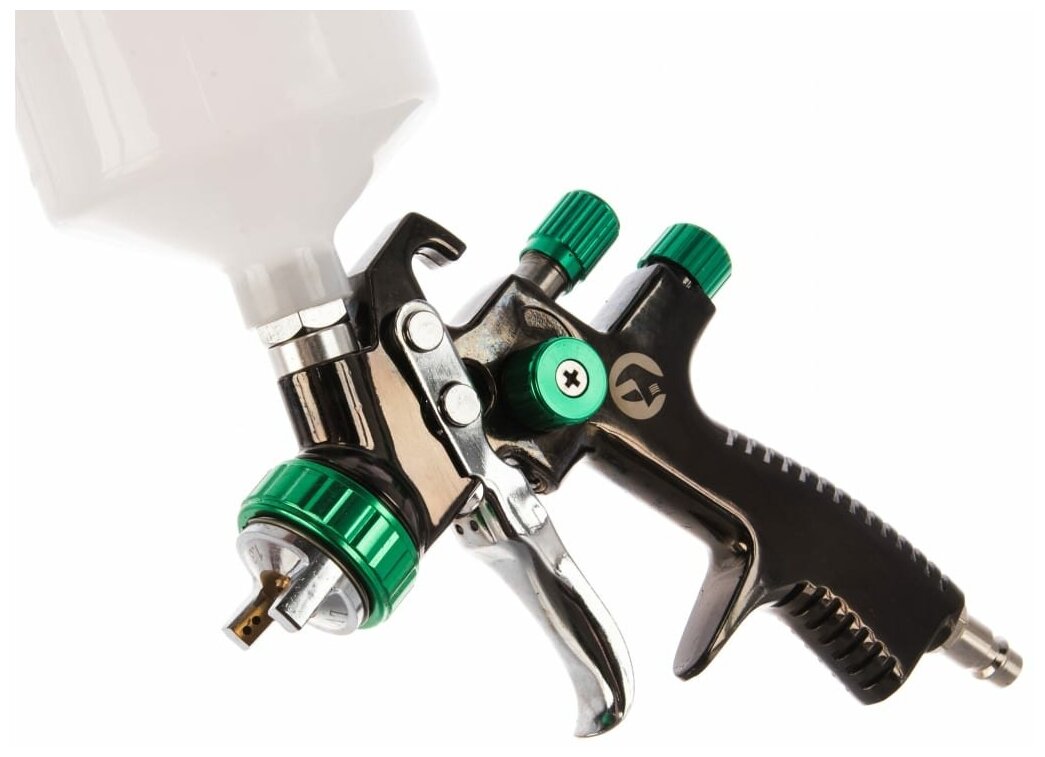 Pneumatic spray gun LVLP GREEN professional, nozzle 1.3mm, top plastic tank 600ml, 1.5bar