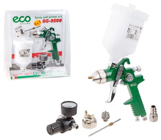 Kraskoraspylitel ECO SG-9500 with pressure gauge HVLP, nozzle f 1.4, 1.7 mm, top. tank 600 ml, blister SG-9500HSTMU