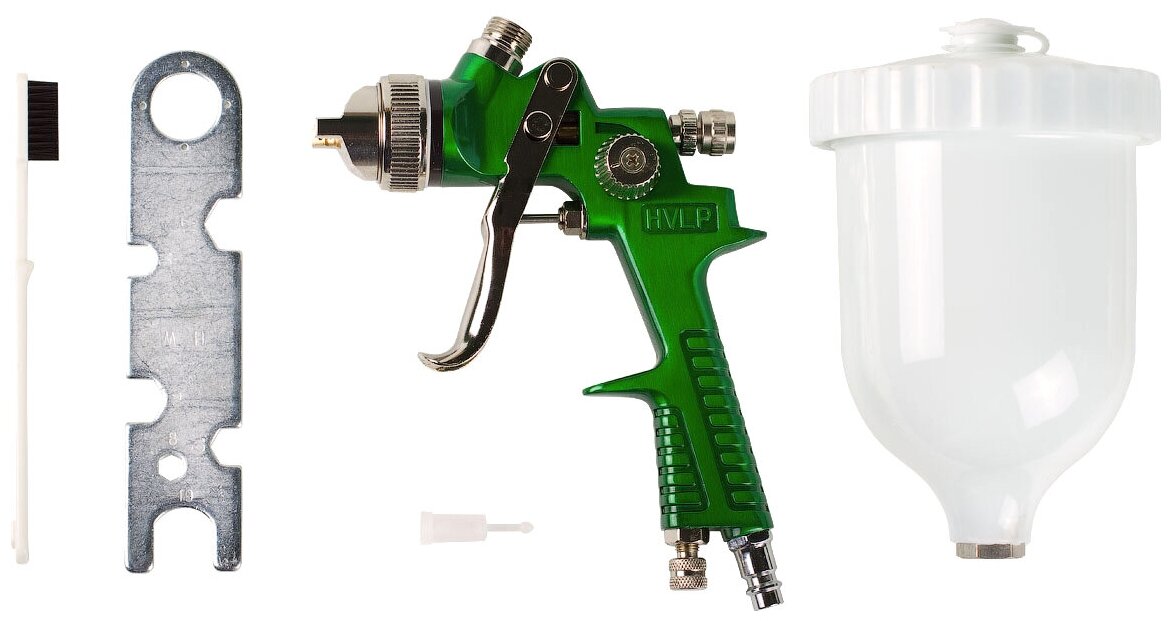 Type: pneumatic spray gun, tank volume: 0.11 l, spray method: HVLP, maximum nozzle diameter: 1 mm, maximum spray width: 220 mm