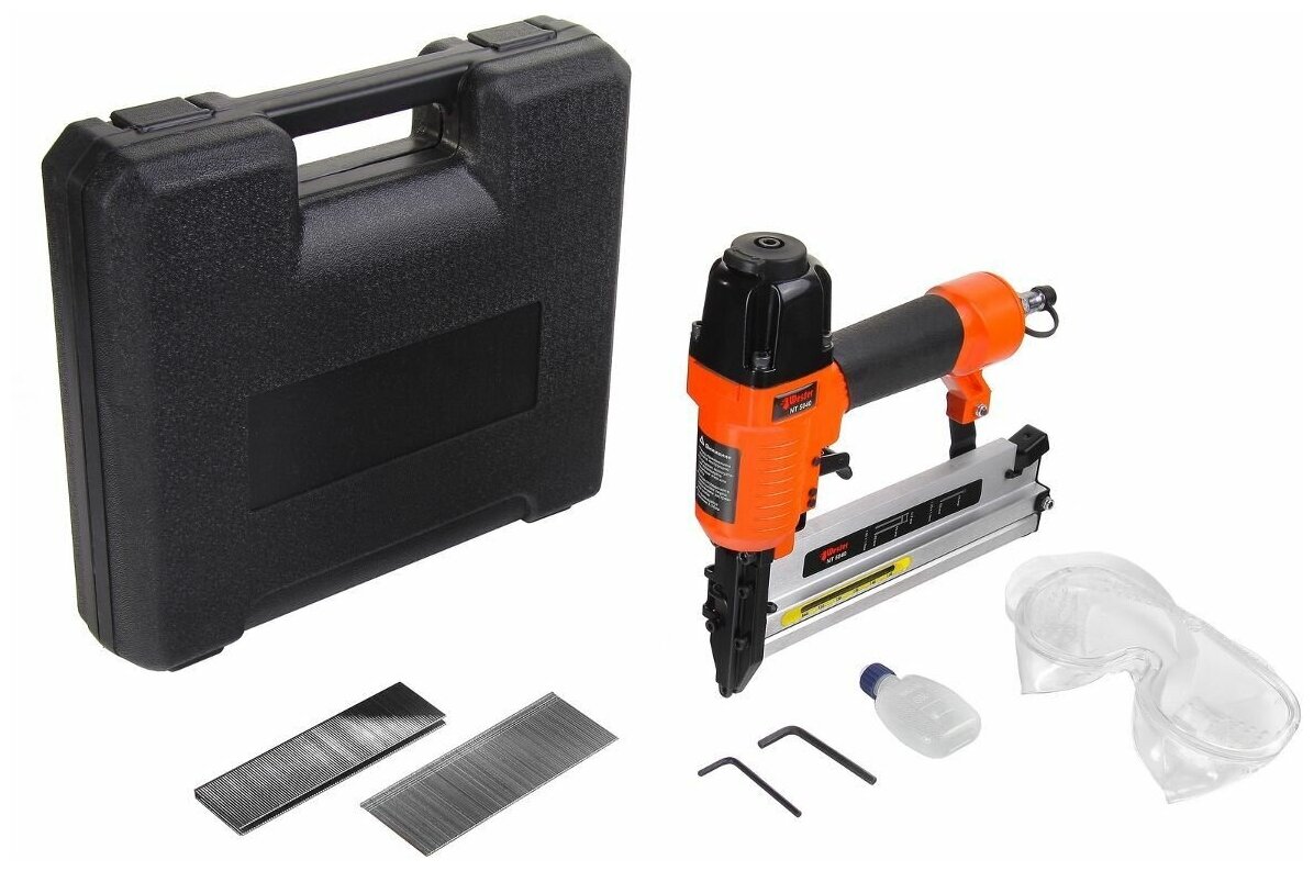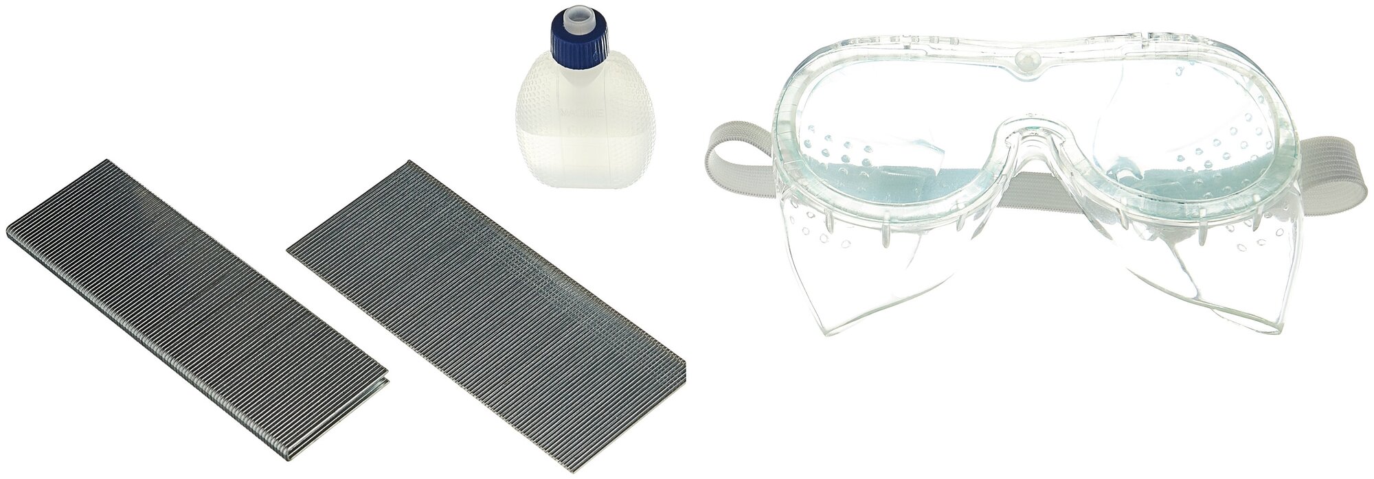 Goggles 1 piece; staples 100 pcs.; nails 100 pcs.; euroadapter 1/4” 1 pc.; socket wrench 4mm 1 pc.; socket wrench 5mm 1 pc.; oiler 15ml 1 pc.; instruction manual 1 pc.; case 1 pc.