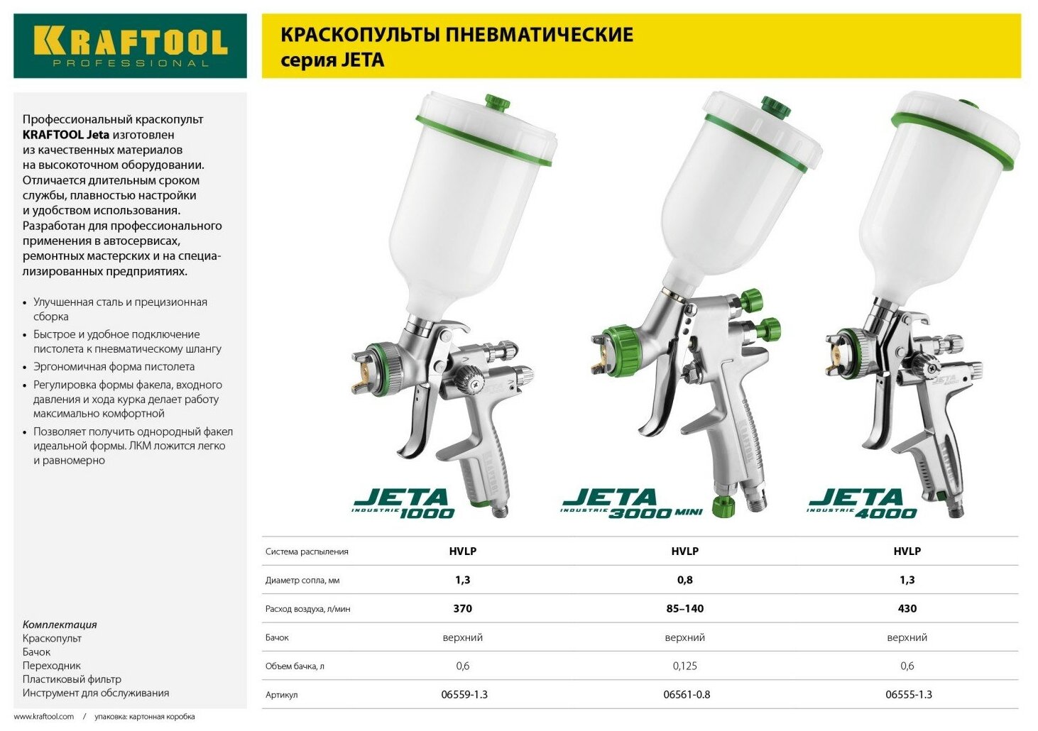 Type: pneumatic spray gun, tank volume: 0.60 l, spraying method: HVLP, maximum nozzle diameter: 1.30 mm
