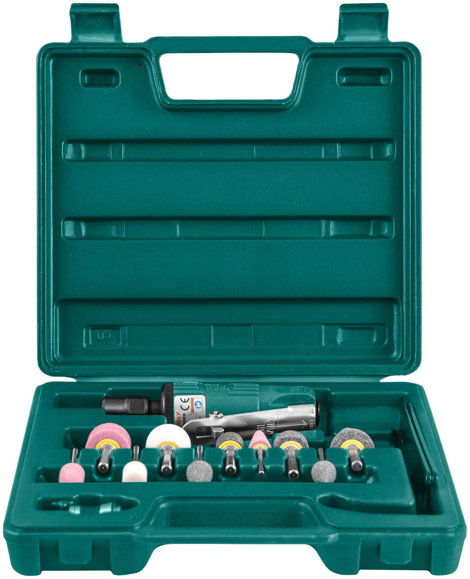 Pneumatic drill JONNESWAY® JAG-0903FM Grinding stones with shank 6 mm, 5 pcs. Grinding stones with shank 3 mm, 5 pcs. The collet is replaceable, for a shank Ø 3 mm. Service keys 2 pcs.