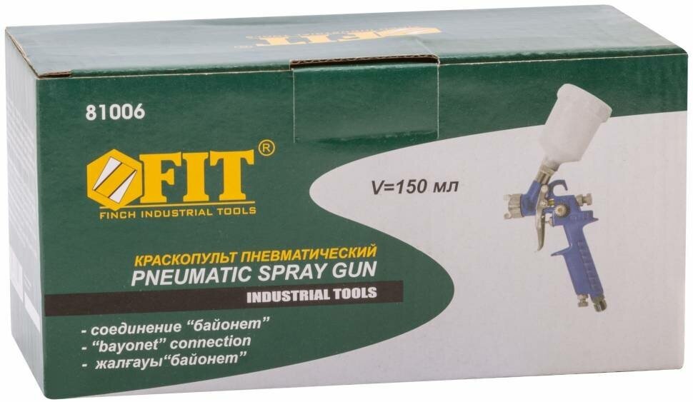 Type: pneumatic spray gun, tank volume: 0.15 l, spraying method: HVLP, material flow control, maximum nozzle diameter: 0.80 mm