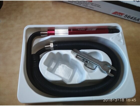 Type: straight grinder, maximum pressure: 6.20 atm, maximum air flow: 20 l/min, air inlet diameter, inch: 1/4, connection type: threaded, weight: 0.20 kg