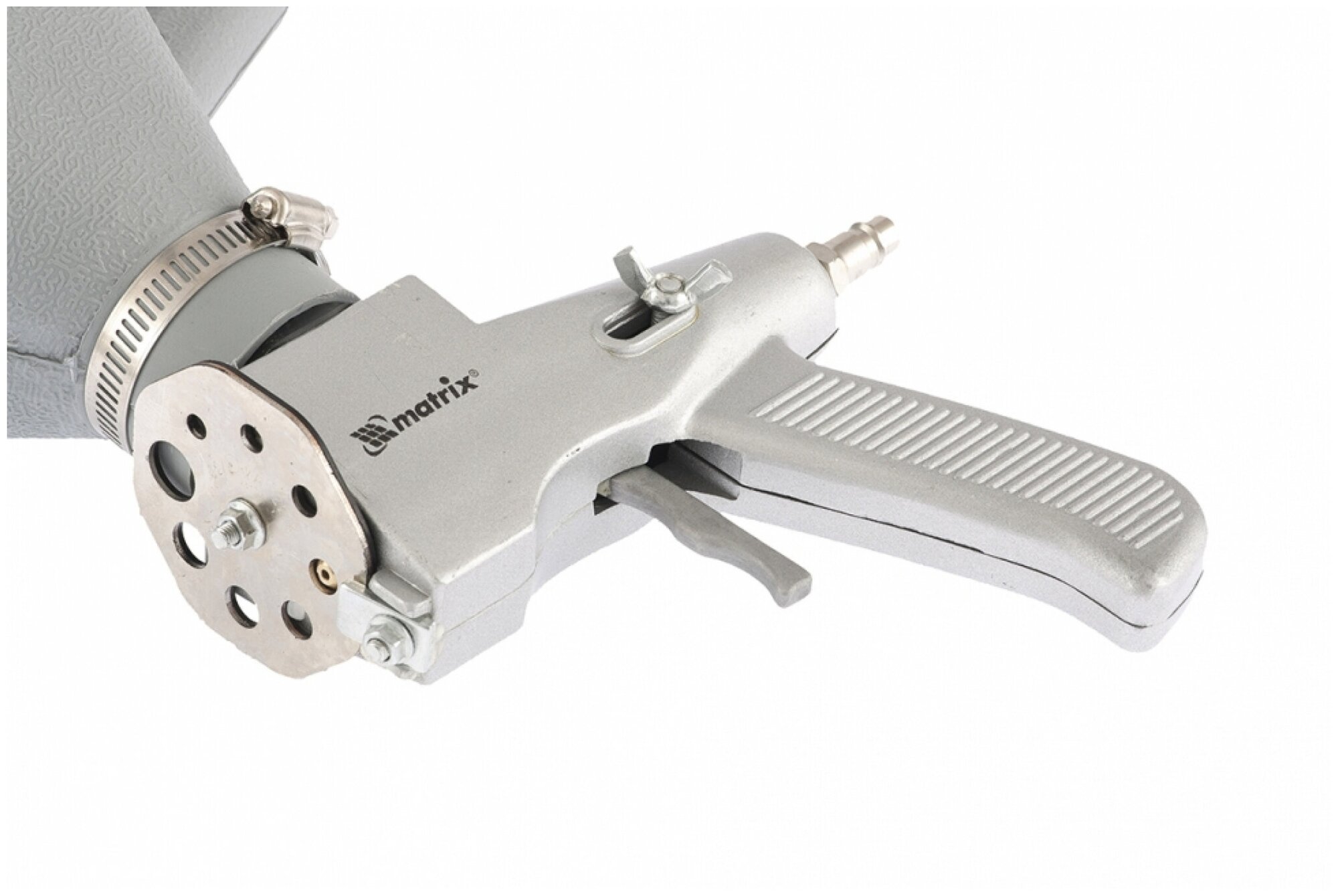 Nozzle sizes: 7/32", 1/4", 9/32", 5/16", 11/32", 3/8" and 13/32"; powered by mains air, compressor or hand pump