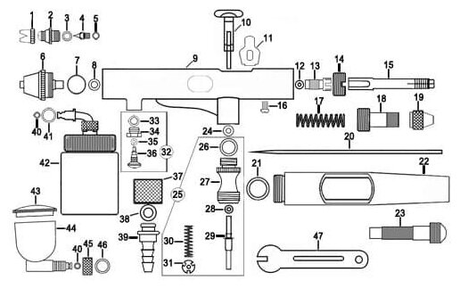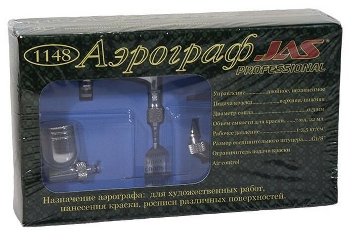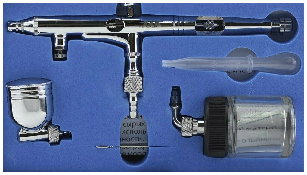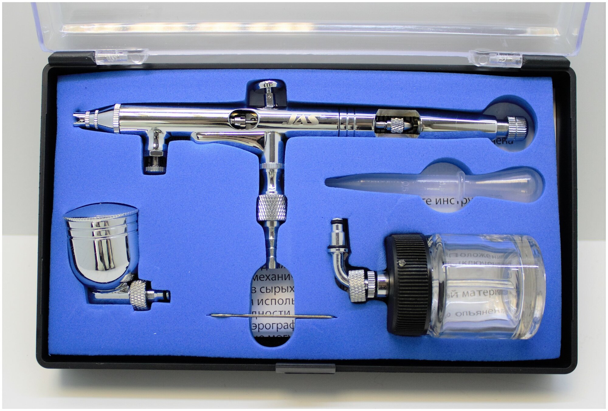 Type: airbrush, action type: double independent, nozzle diameter adjustment, maximum nozzle diameter: 0.70 mm, air and ink flow mixing type: external
