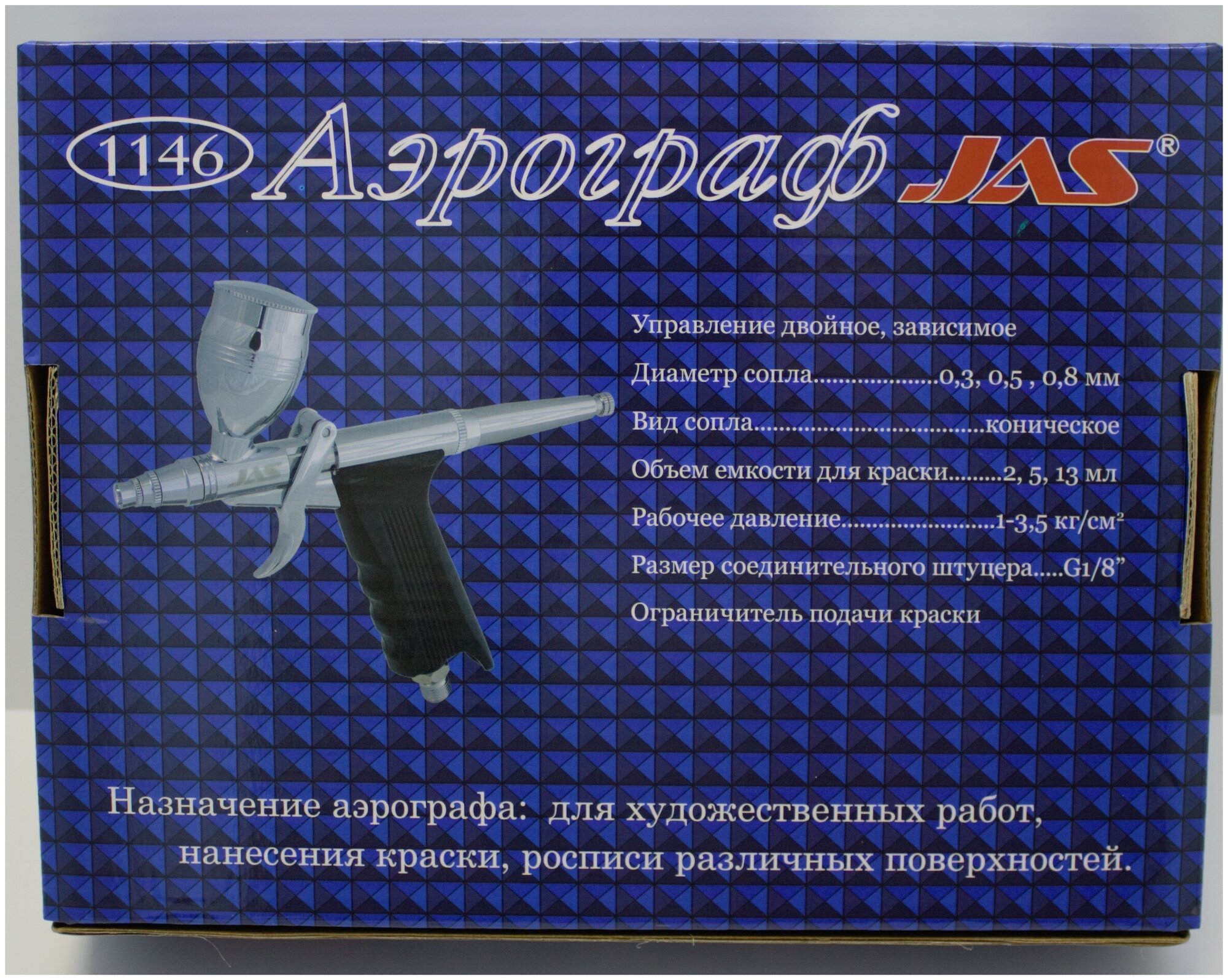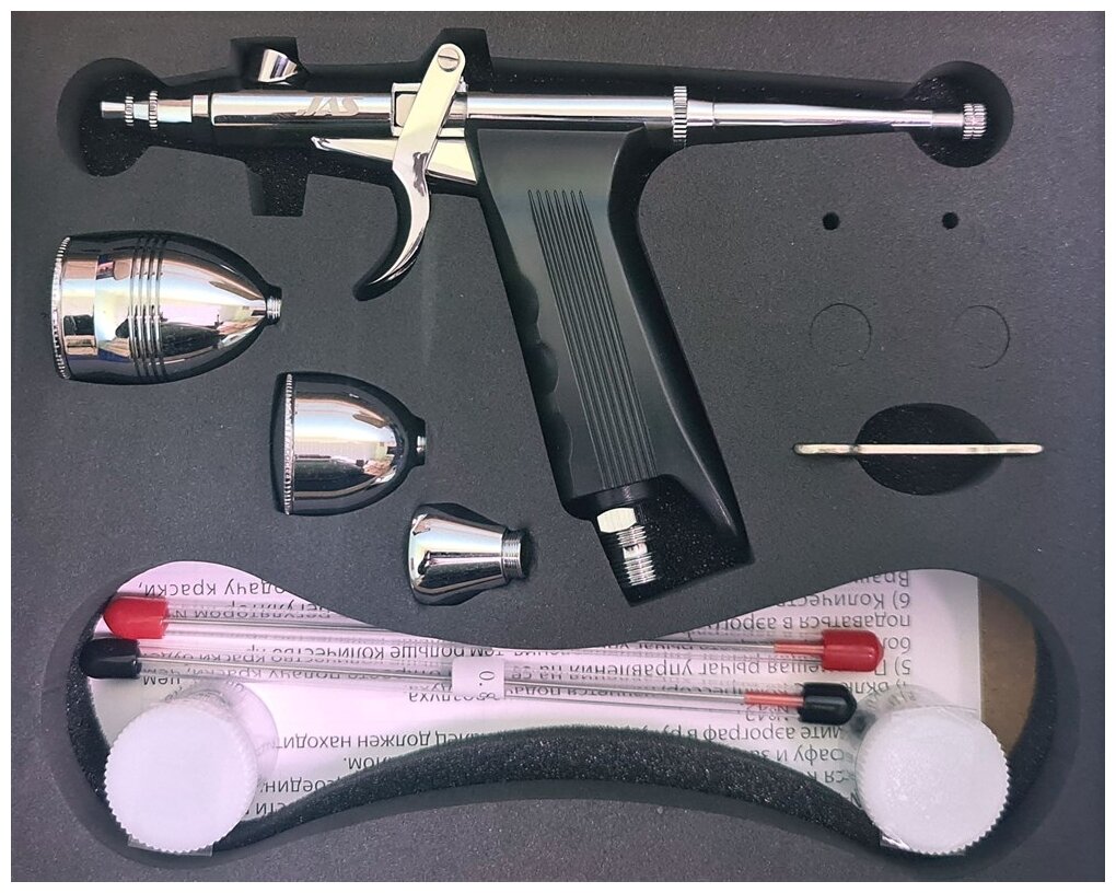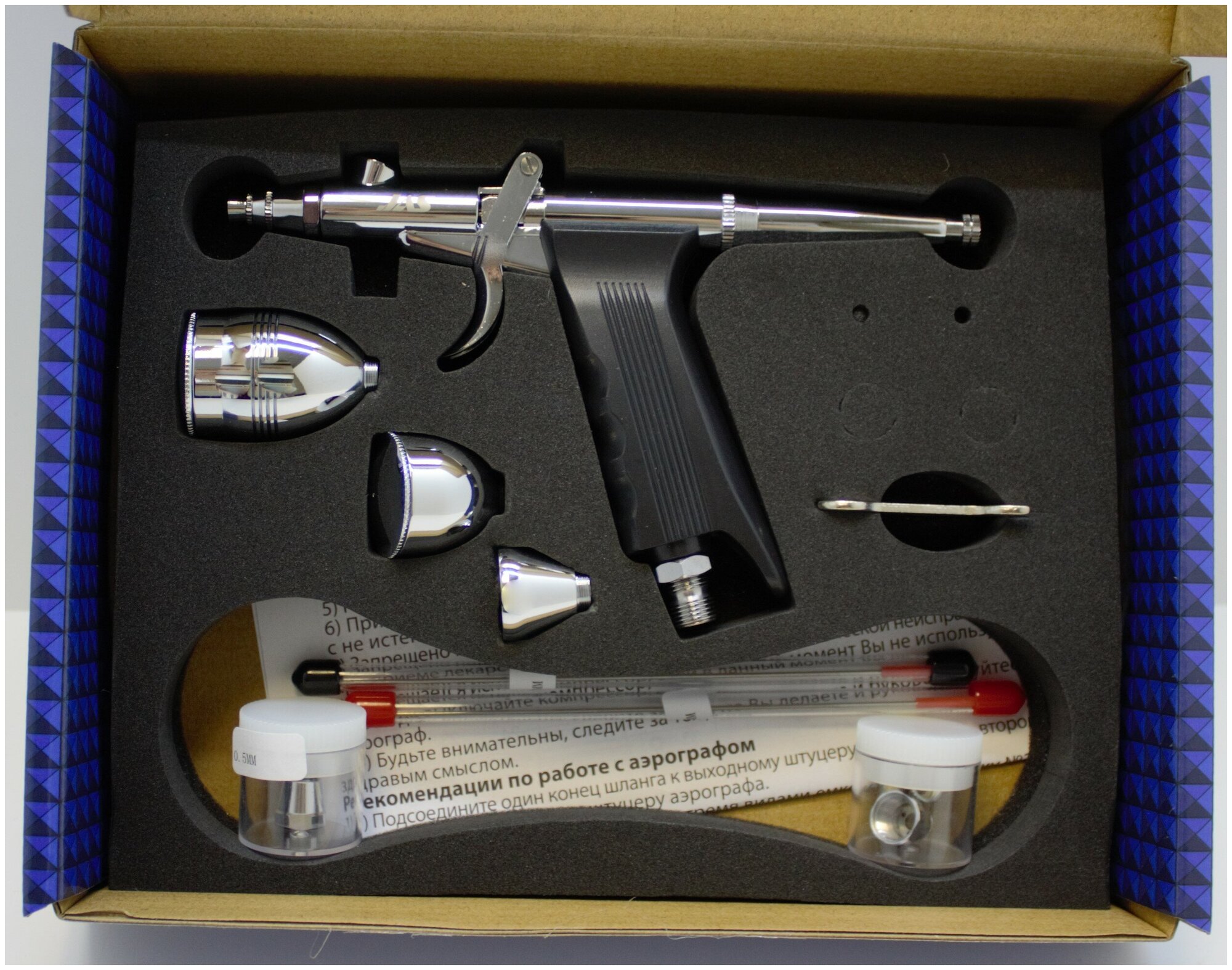 Type: airbrush, action type: double dependent, material supply type: top, material supply adjustment, nozzle diameter adjustment, maximum nozzle diameter: 0.80 mm, air and ink flow mixing type
