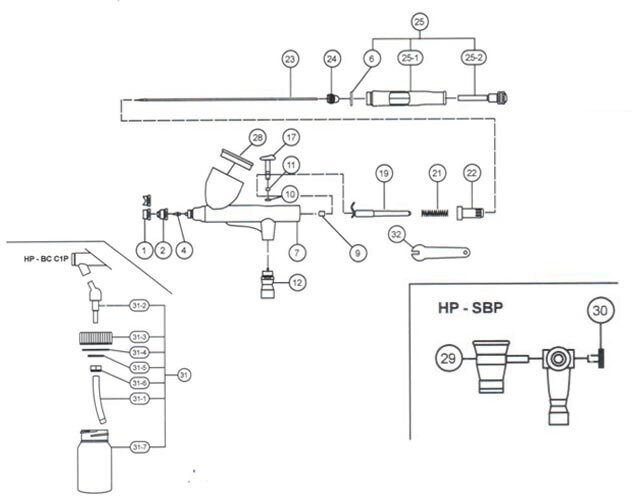 Type: airbrush, tank volume: 0.01 l, maximum nozzle diameter: 0.30 mm, air and ink flow mixing type: internal