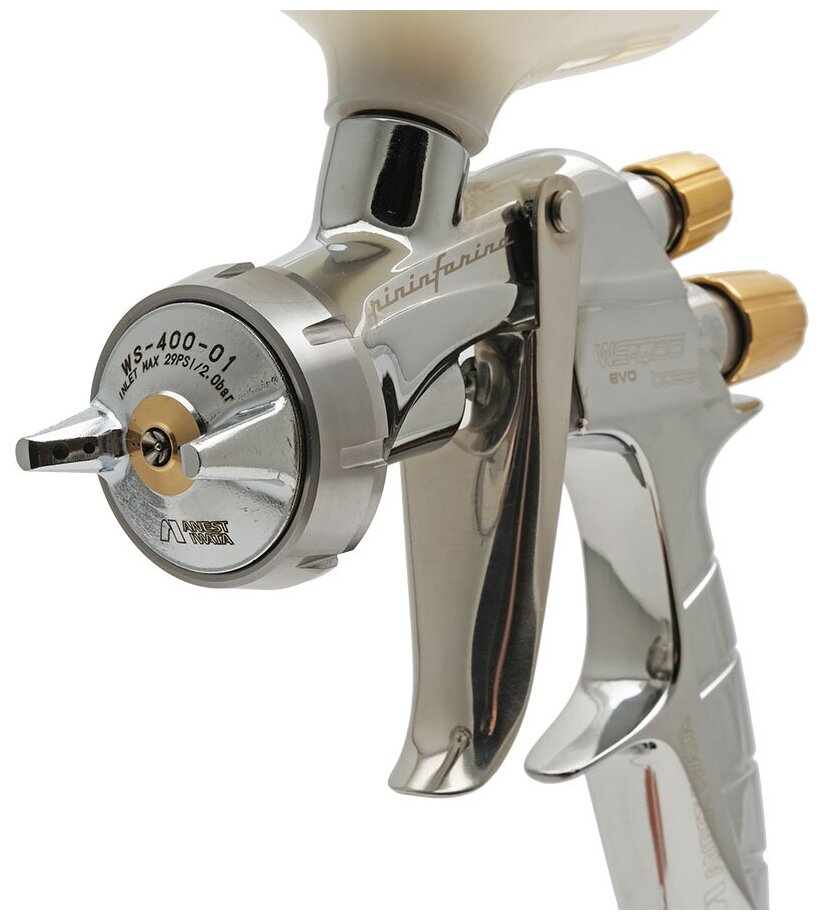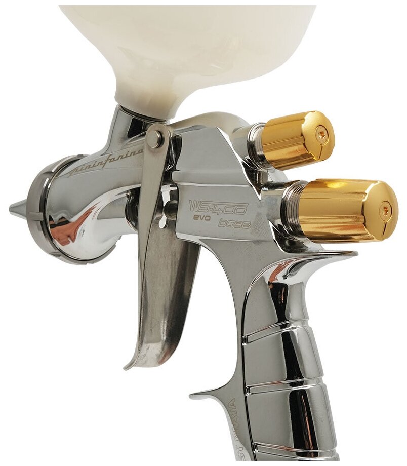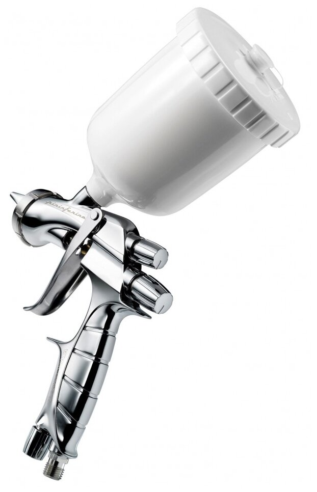 Type: pneumatic spray gun, tank volume: 0.60 l, spraying method: LVLP, action type: double independent, material supply type: top, material supply adjustment, mat feed presetting mechanism