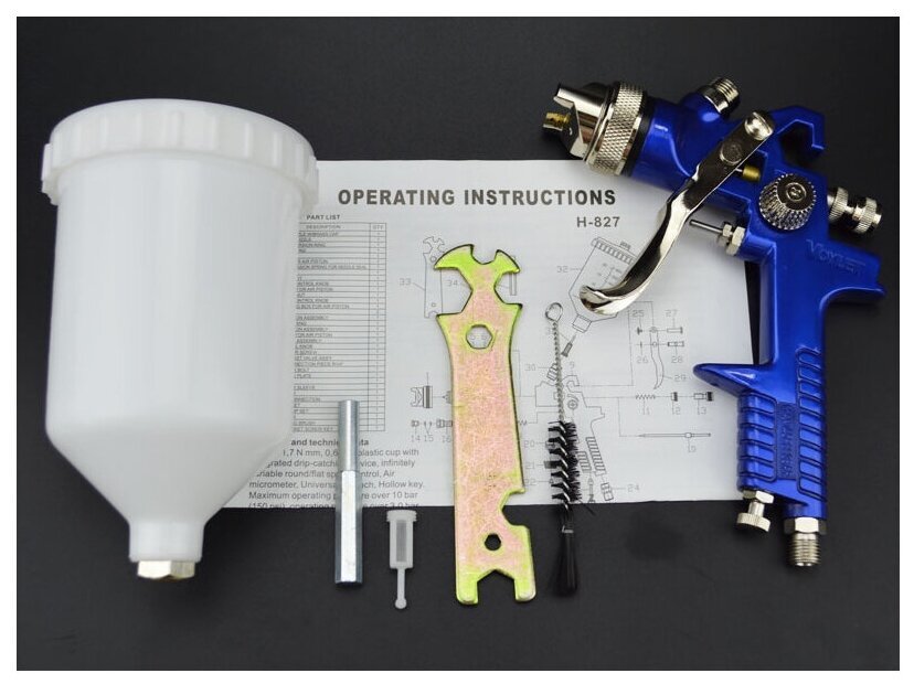 Type: pneumatic spray gun, tank volume: 0.60 l, spraying method: HVLP