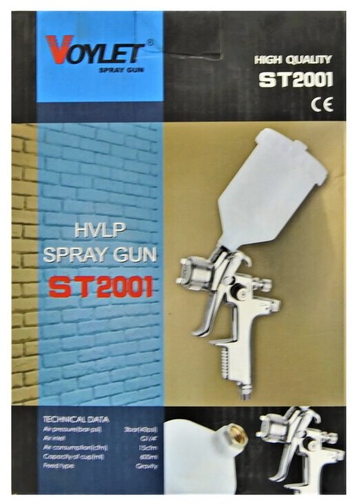 Description: Type: pneumatic spray gun, tank volume: 0.60 l, spraying method: HVLP, material supply adjustment, nozzle diameter adjustment, maximum spray width: 160 mm