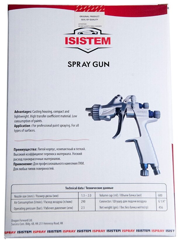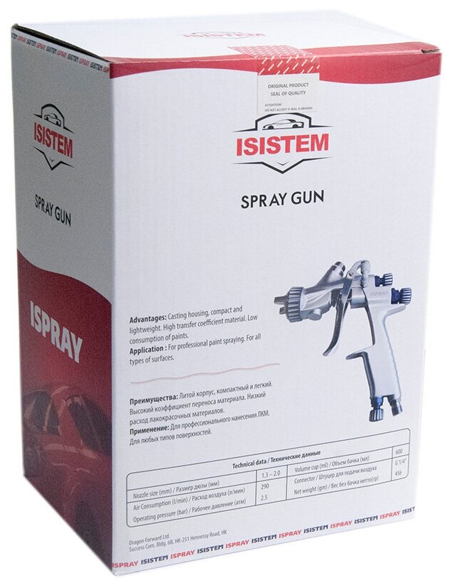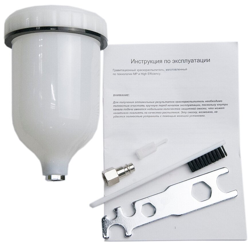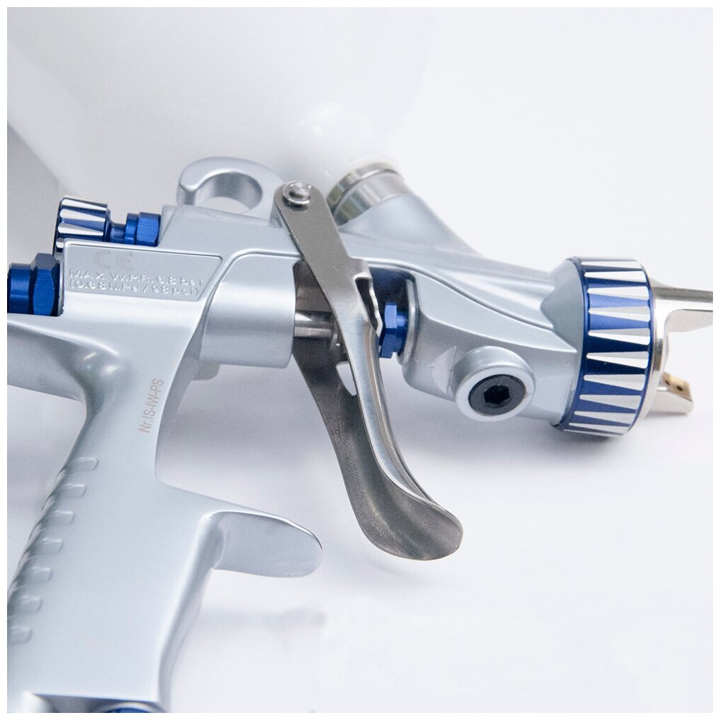 Type: pneumatic spray gun, tank volume: 0.60 l, material supply type: top, material supply adjustment, nozzle diameter adjustment, air and ink flow mixing type: internal