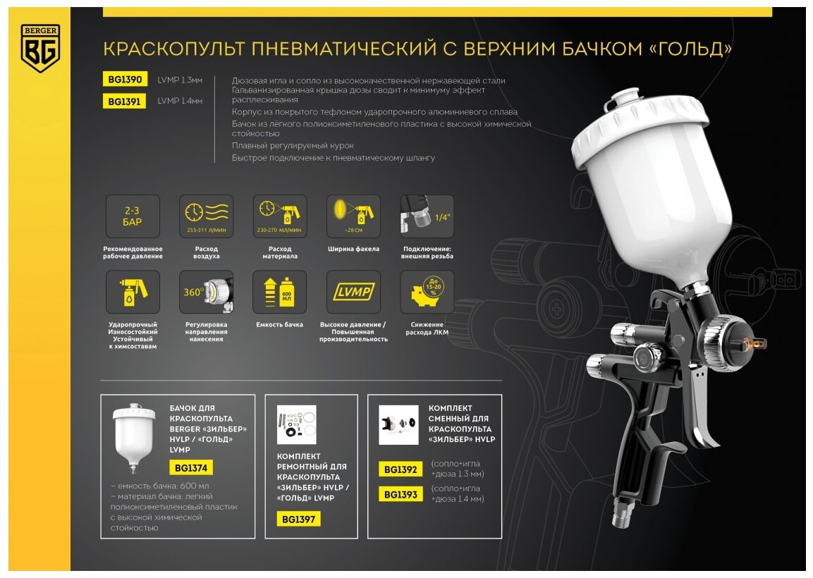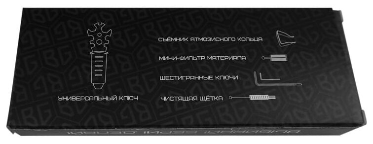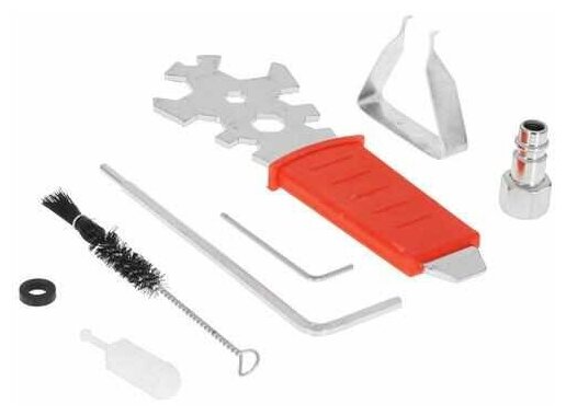 Equipment: Tank, adapter-connector from thread F1/4″ to quick-release M1/4″, plastic mini-filter for paintwork materials, set of wrenches for maintenance of the spray gun, brush for cleaning
