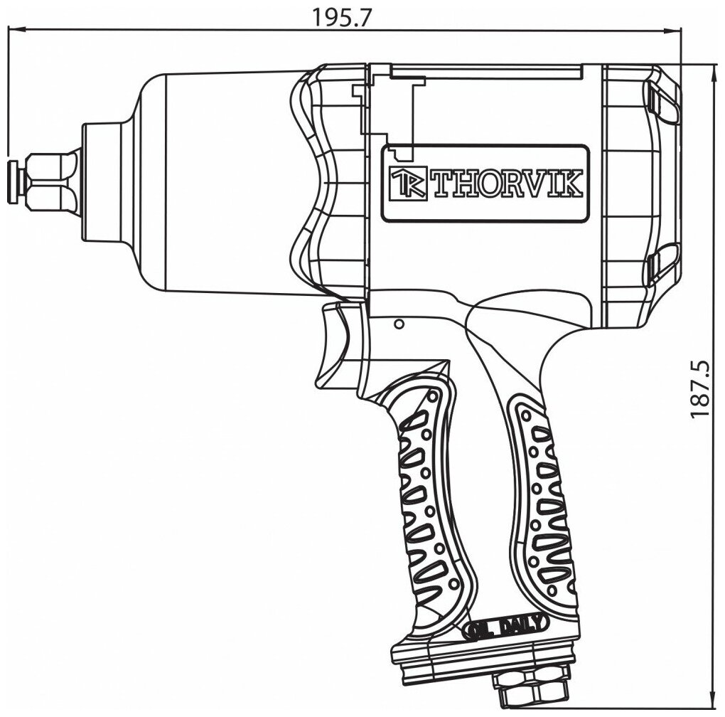 Type of percussion mechanism - Twin Hammer; composite materials; low vibration level; tool dimensions: length 195.7 mm, height 187.5 mm, width 69 mm