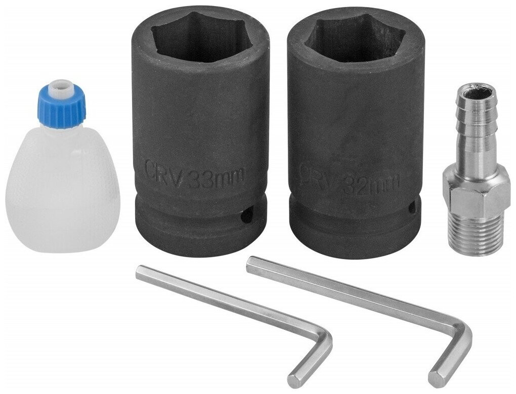 Extended spindle; drive mechanism axisless hammer; tool dimensions: 710 mm, width 230 mm, height 165 mm; socket set: 32, 33 mm