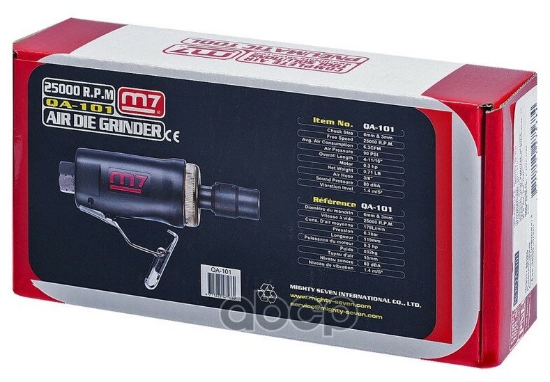 Type: straight grinder, maximum pressure: 6.24 atm, maximum air flow: 141 l/min, air nozzle diameter, inches: 1/4, connection type: threaded, maximum noise level: 80 dB, weight: 0.30 kg