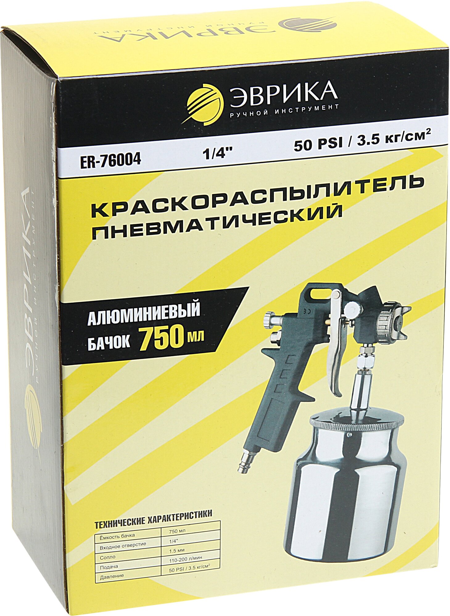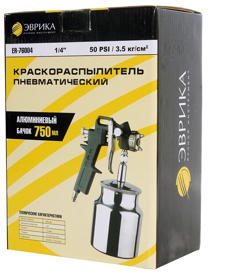 Type: pneumatic spray gun, tank volume: 0.75 l, maximum nozzle diameter: 1.50 mm