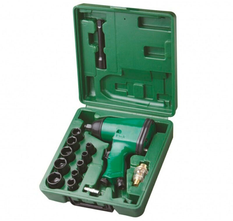 Quick-detachable adapter nipple, impact heads - 10 pcs. 9,10,11,13,14,17,19,22,24,27 mm, linear mini lubricator, extension 12.7 cm, oiler, case, instructions