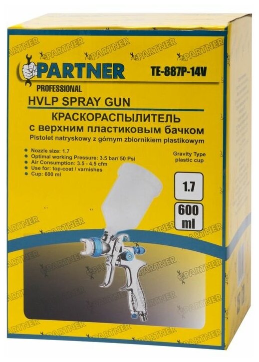 Type: pneumatic spray gun, tank volume: 0.60 l, spraying method: HVLP, material flow control, maximum nozzle diameter: 1.70 mm