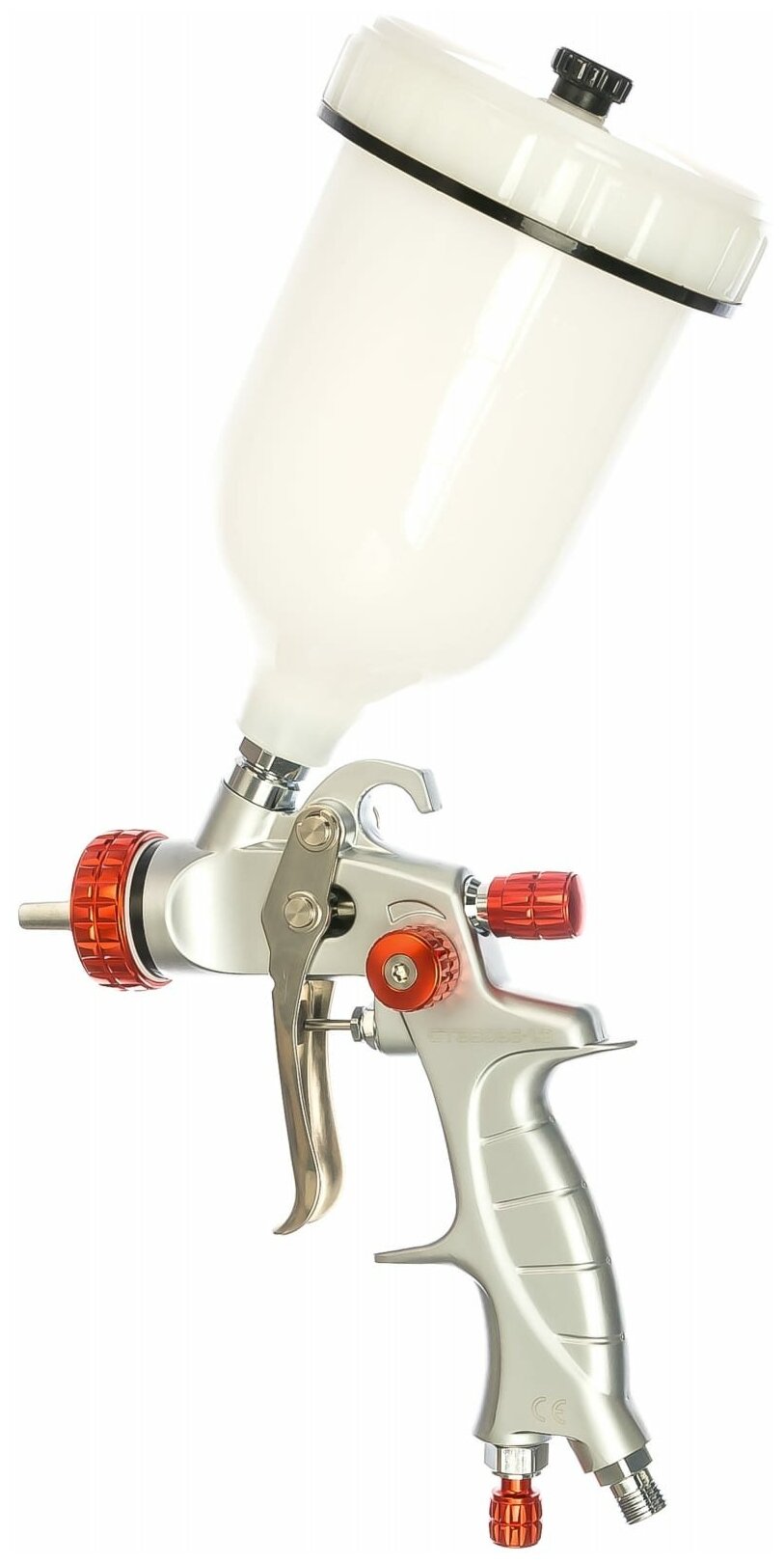 Type: pneumatic spray gun, tank volume: 0.60 l, spray method: HVLP, maximum nozzle diameter: 1.30 mm, maximum spray width: 240 mm
