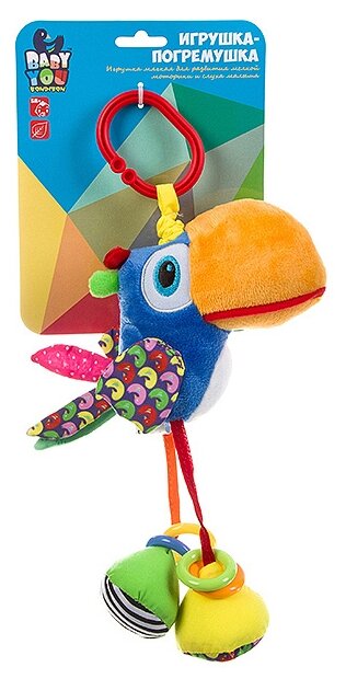 Type: hanging toy, effects: vibration, sound, educational elements: rattle, tactile inserts, material: plastic, textile