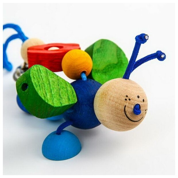 Type: hanging toy, effects: sound, educational elements: bell, tactile inserts, material: wood