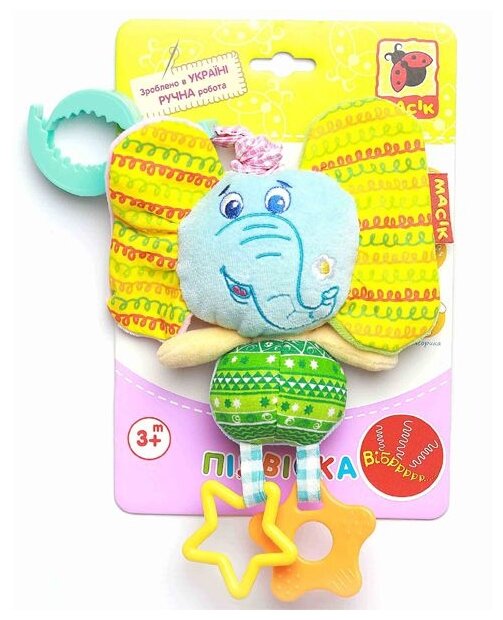 Type: hanging toy, effects: vibration, sound, educational elements: teether, tactile inserts, rustling and crunchy elements, material: plastic, textile