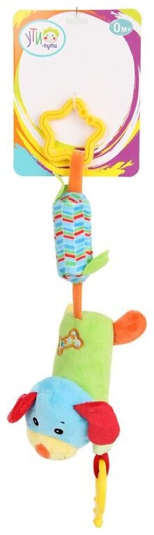 Type: hanging toy, effects: sound, educational elements: bell, rattle, teether, tactile inserts, material: plastic, textile