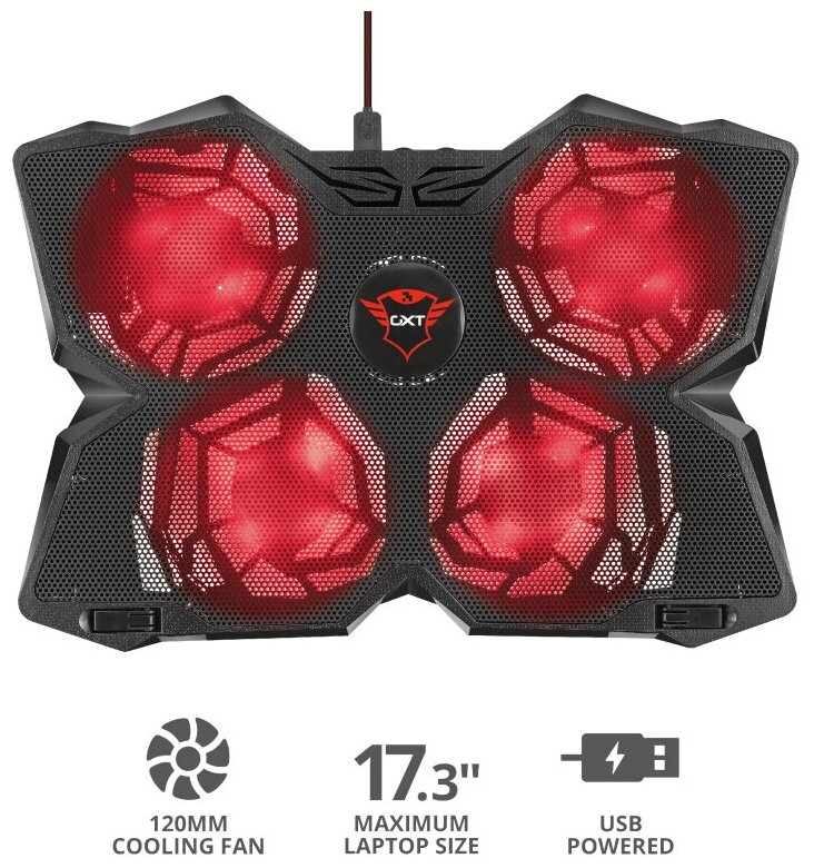 Type: stand, maximum laptop diagonal: 17.30", features: backlight, with cooling, with support, width: 28.60 cm, height: 3 cm, body material: plastic