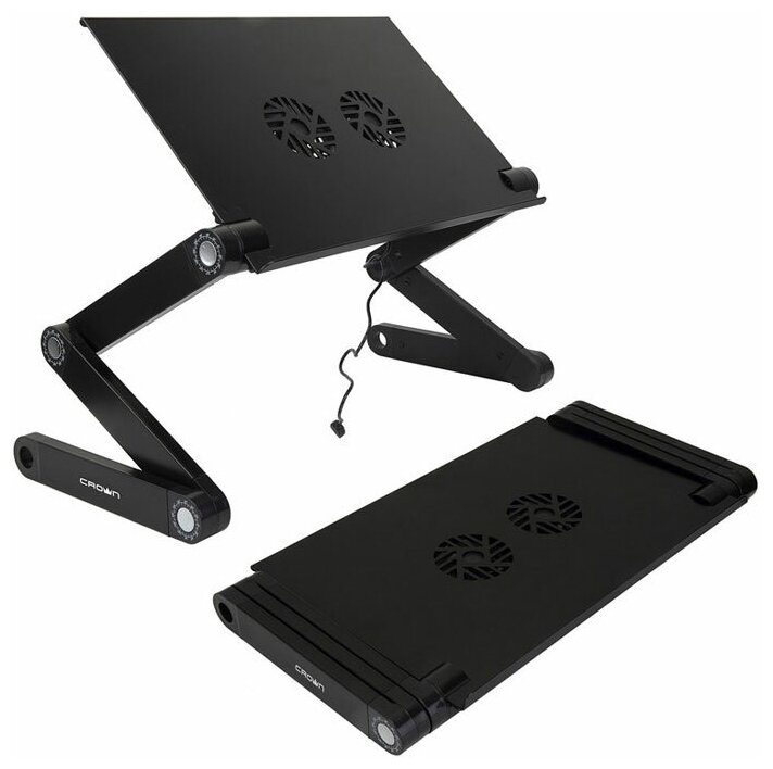 Type: table, maximum laptop diagonal: 17", features: height adjustment, adjustable tilt angle, with cooling, with support, transformer, width: 27.50 cm, height: 48 cm, case material: metal