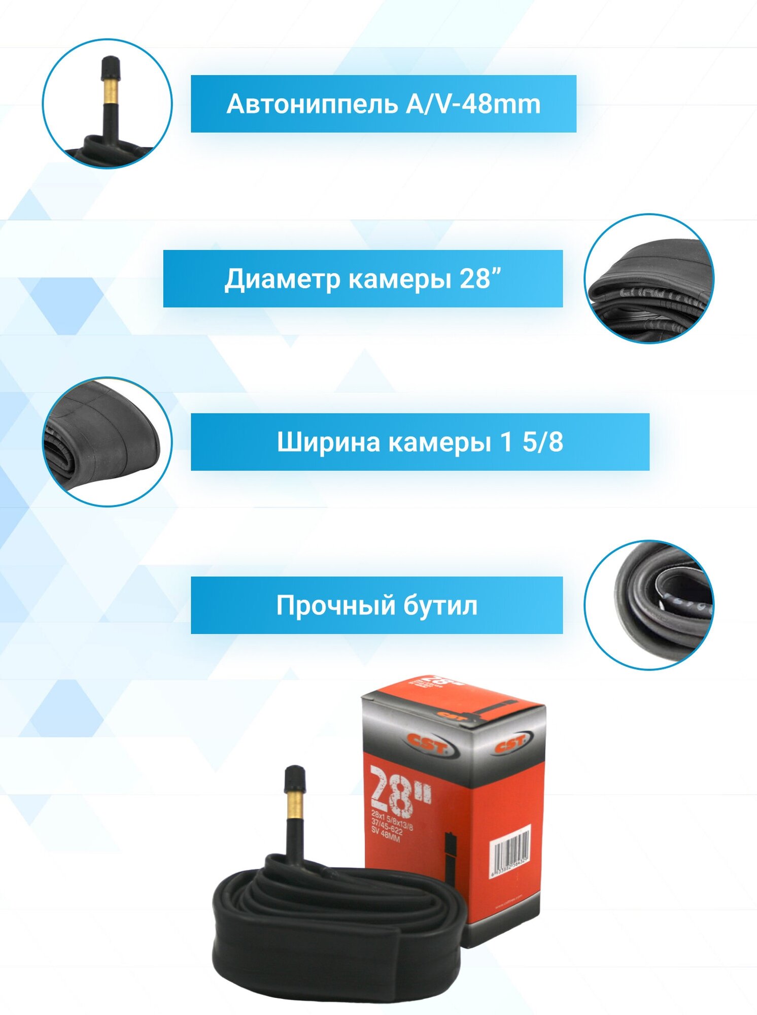 Type: chamber, diameter: 28", 700, width: 1.95", 35c, 38c, 45c, nipple: Schrader automotive