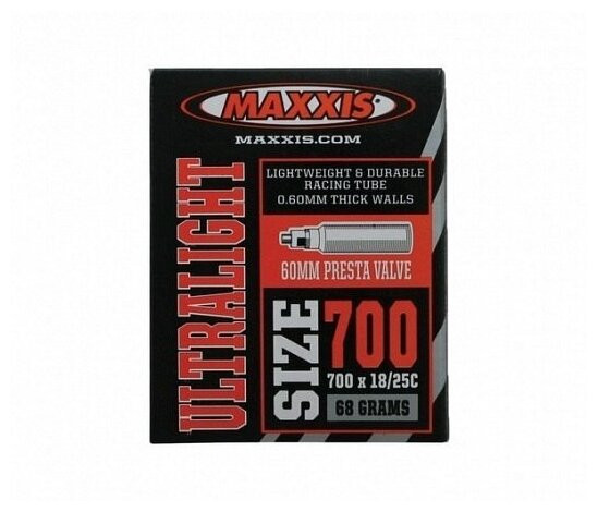 Bicycle tube Maxxis UltraLight, 700x18/25C, Presta nipple 60 mm, bicycle nipple, IB69859200