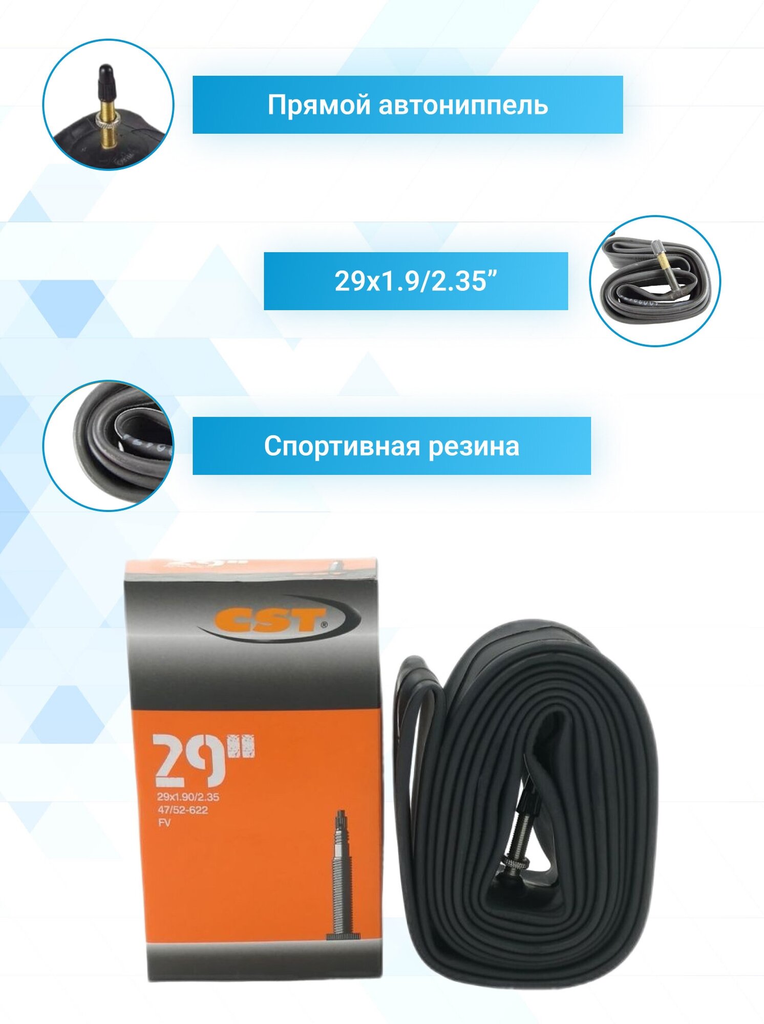 Purpose: city, mountain MTB, BMX; set: no; Detailed equipment: Camera 29" CST Schrader 29x1.9 on 2.35 Schrader 48mm, IB97811200 - 1 pc.