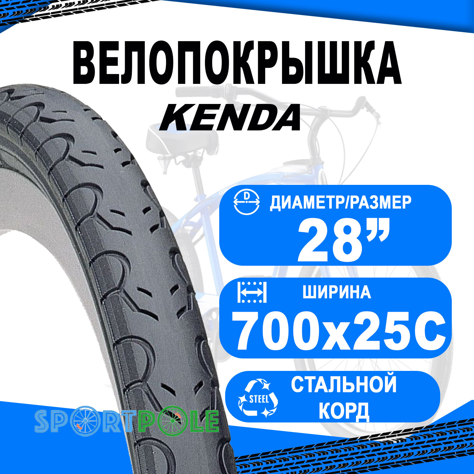 Type: tyre, diameter: 28, 700, width: 25c, tread type: slick, cord material: steel