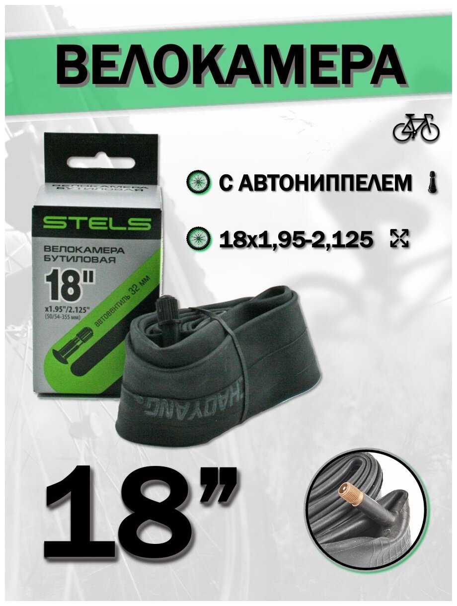 Type: tube, diameter: 18", 8", width: 1.95", 2.00", 2.10", 2.125", nipple: Schrader automotive, features: individual packaging, cord material: butyl