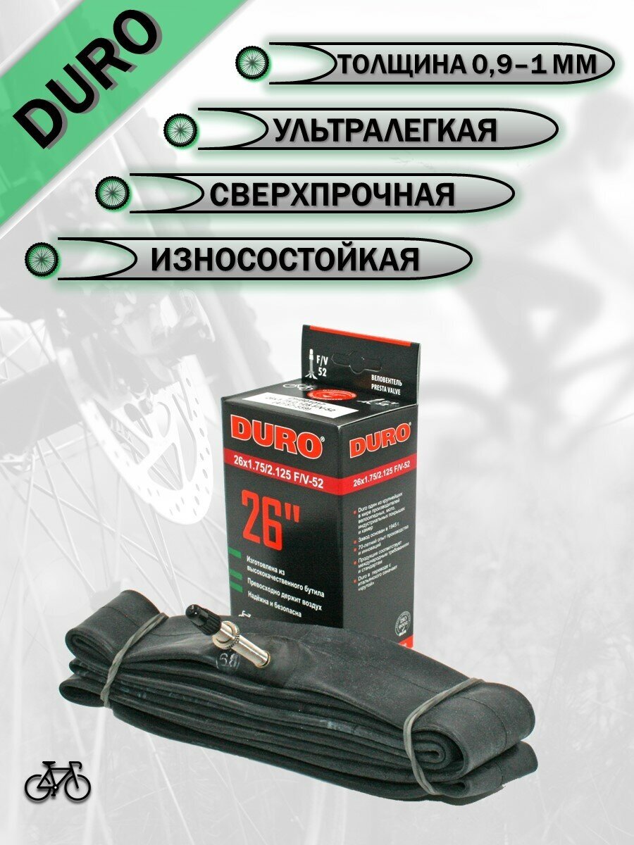 Bicycle inner tube 26 DURO 26x1,75/2,125 F/V-52/DHB01017
