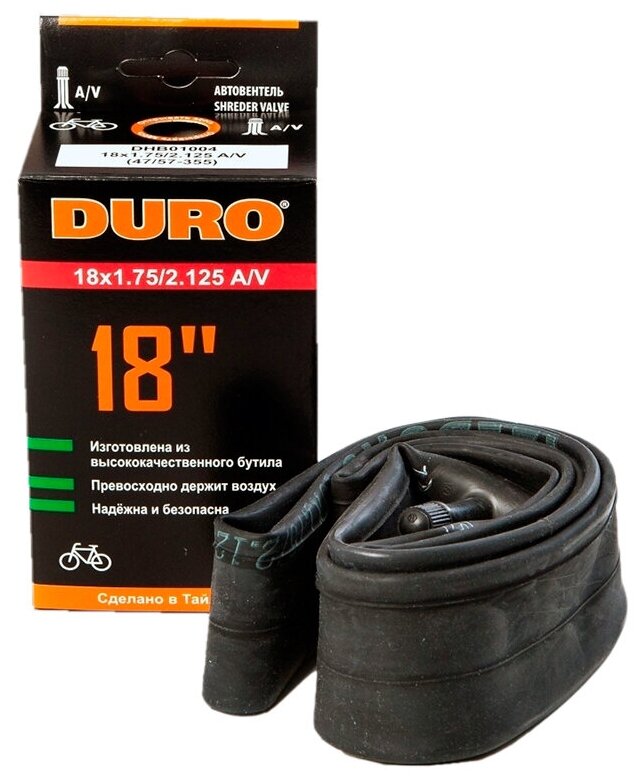 18" Duro bike tube, Schrader AV auto nipple, 18 x 1.75/2.125 BHD01004
