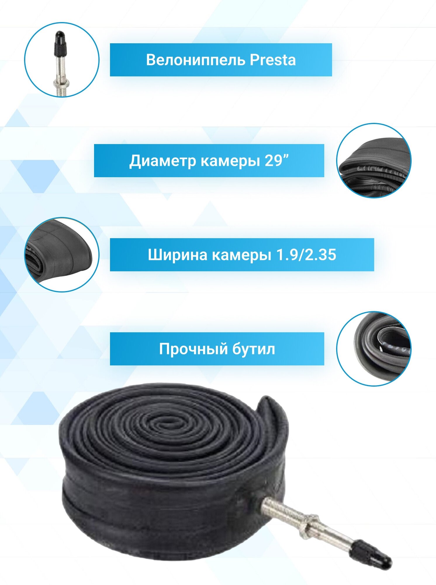 Type: tube, diameter: 29", width: 1.90", 1.95", 2.00", 2.10", 2.125", 2.15", 2.20", 2.25", 2.30", 2.35", nipple: Presta bicycle, features: for any type of bicycles