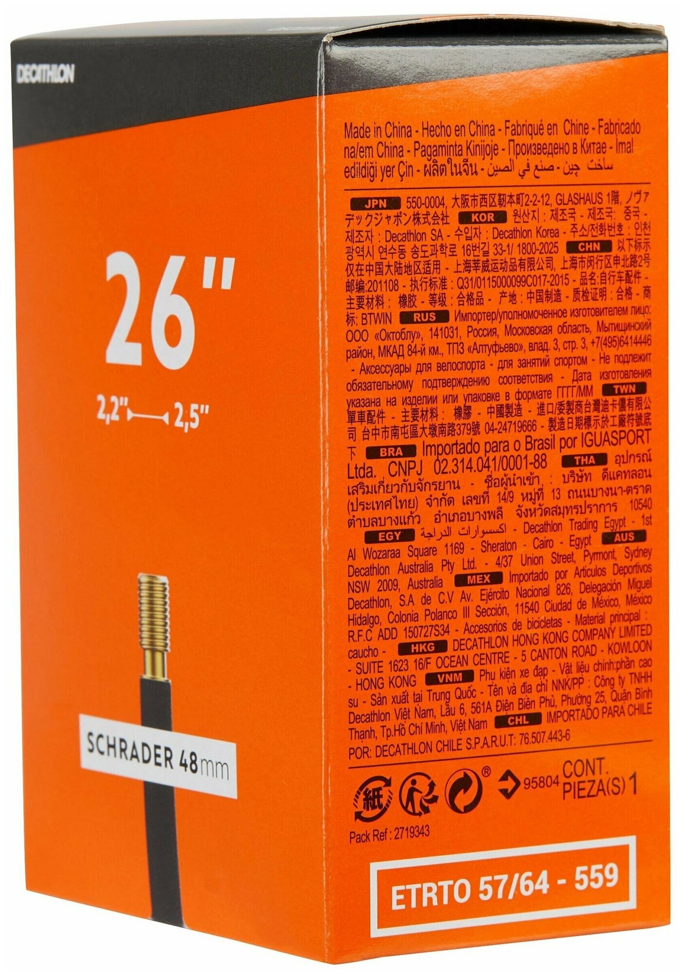 Chamber 26 x 1.7/2.2 Schrader nipple 48mm BTWIN X Decathlon