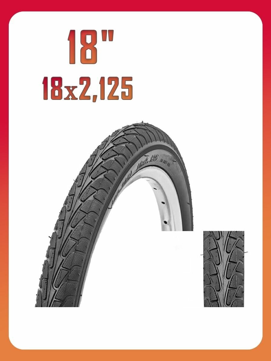 Type: tire, diameter: 18", 8", width: 2.125", tread type: semi-slick, features: no tube
