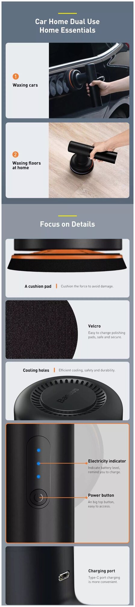 Polisher, flat nozzle, serrated nozzle, fluffy nozzle, Type-C charging cable