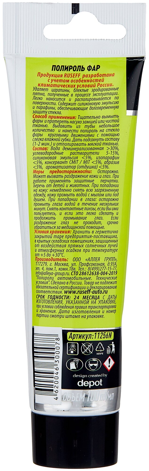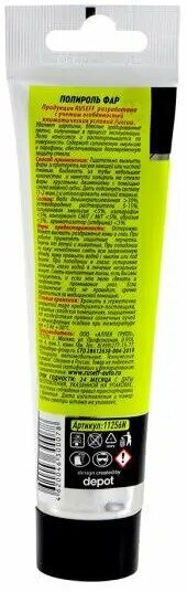 Type: polish, field of application: plastic headlights, glass headlights, type of polishing: restoration, base: silicone, release form: creamy, effect: water-repellent, dirt-repellent, for polishing