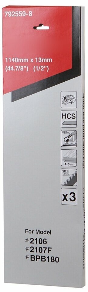 Type: saw blade, purpose: for band saw, length: 1140 mm, blade width: 13 mm, blade thickness: 0.50 mm, processing material: metal