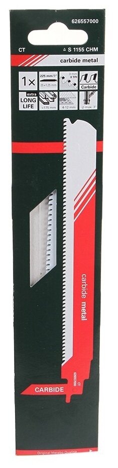 Type: saw blade, purpose: for reciprocating saw, length: 225 mm, blade thickness: 1.25 mm, processing material: metal, tooth pitch: constant